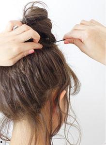 4. 如果你想让丸子头更加立体,可以在扎好之后,用手指轻轻抓出一些凌乱的发丝。